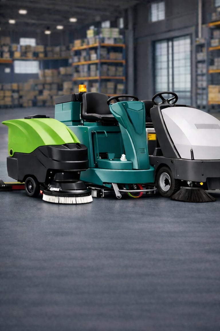 Máquinas de limpeza profissional em ambientes reais de trabalho